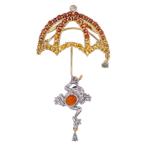 【名東】ブローチ 傘 カエル モチーフ K18 サファイア ダイヤ オパール アクアマリン