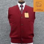 深喜毛織 カシミヤ100% 前開き Vネックベスト ワイン メンズ 日本製 フカキ 71070-WN