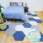 送料無料 タイルカーペット 洗える 住宅用 ペット 床暖房 カキウチ ラグタス ヘキサゴン 江戸間 4.5畳(36枚)