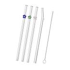 カクテルミルク用ガラスストロー5本セットフラワー20cm / 7.8インチ再利用可能なガラスストロー