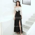 パーティードレス イブニングドレス カクテルドレス 演奏会 カラードレス ロングドレス 黒 長袖 発表会 二次会 オフショルダー スリット リボン 大きいサイズ