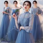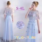 ドレス 大人 ピアノ 発表会 レディース パーティードレス ライトブルー 結婚式 お呼ばれ フォーマル 袖付き 大きいサイズ カクテルドレス ロング