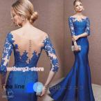 マーメイドドレス 長袖 演奏会 二次会 イブニングドレス 安い 花嫁 ロングドレス カラードレス 結婚式 カクテルドレス 披露宴 発表会 ウェディングドレス 青