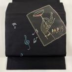 開き名古屋帯 逸品 松葉仕立て カクテルグラス 音符 墨色 正絹 中古