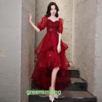 カラードレス カクテルドレス ロングドレス 前短後長 フィッシュテールドレス パーティードレス 発表会 演奏会 ステージドレス 赤 レッド チュール