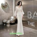 カラードレス カクテルドレス ロングドレス パーティードレス 発表会 演奏会 フォーマルドレス イブニングドレス マーメイドライン オフホワイト 長袖 刺繍