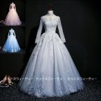 カラードレス ステージ衣装 グレー ブルー ピンク 長袖 演奏会 ロングドレス レース 発表会 コンサート コンクール 舞台衣装 上品 大きいサイズ サイズオーダー