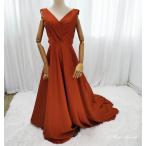 カラードレス ファスナー テラコッタ オレンジ 前撮り バックVネック ロングドレス 結婚式 二次会 発表会 演奏会 ウェディングドレス ウエディングドレス
