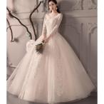 ウエディングドレス ロングドレス 二次会 花嫁 Aラインドレス パーティドレス 結婚式 ウェディグドレス レース 前撮り 編み上げ 刺繍 大きいサイズ 袖あり 大人