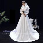 ウェディングドレス 二次会 結婚式 ブライダル ロングドレス サテン プリンセス パフスリーブ 前撮り 挙式 花嫁 ウエディングドレス シンプル パーティー