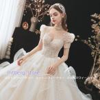 ウェディングドレス 花嫁 二次会 シャンパン ウエディングドレス 結婚式 ロング 豪華 プリンセスライン 半袖 挙式 披露宴 ブライダル トレーン ゴージャス