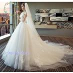 ウェディングドレス 結婚式 二次会 ホワイト 花嫁 ウェディング 白ドレス ロングドレス 披露宴 aライン トレーン 安い 花嫁 挙式 シースルーレース 結婚式