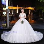 ウェディングドレス 花嫁 二次会 ウエディングドレス 結婚式 ロングドレス Aラインドレス オフショルダー 挙式 披露宴 ブライダル 編み上げ トレーン クラシック