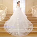ウェディングドレス 花嫁 二次会 ウエディングドレス 結婚式 ロングドレス プリンセスライン トレーン 挙式 披露宴 ブライダル フラワー 編み上げ 豪華