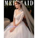 ウェディングドレス プリンセスラインドレス レース ウエディングドレス 二次会 花嫁 パーティードレス 披露宴 ブライダル 結婚式 ロングドレス 白 5分袖 伝統