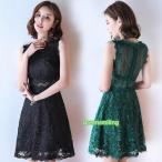 ショートドレス ノースリーブ 二次会 総レース 膝丈 カクテルドレス フォーマル ワンピース ファスナー 小さいサイズ 大きいサイズ 発表会