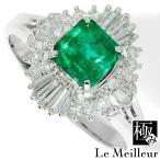 エメラルド 0.90ct ダイヤモンド 0.48ct プラチナ Pt900 ヘイローリング 13号 指輪 【極み仕上】 新品仕上済 中古 返品OK