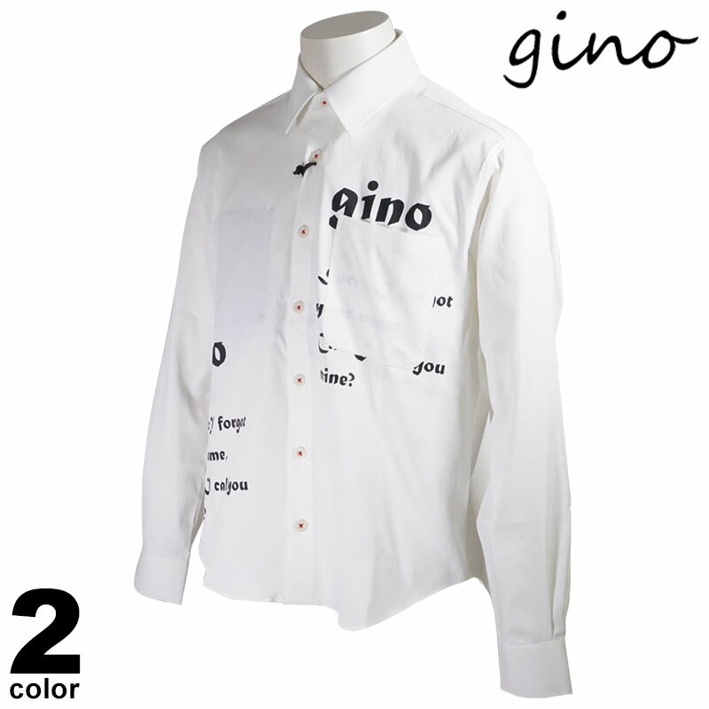セール 30%OFF gino ジーノ 長袖 カジュアルシャツ メンズ 2022秋冬 シャツ プリント 日本製 ロゴ 25-1005-02n