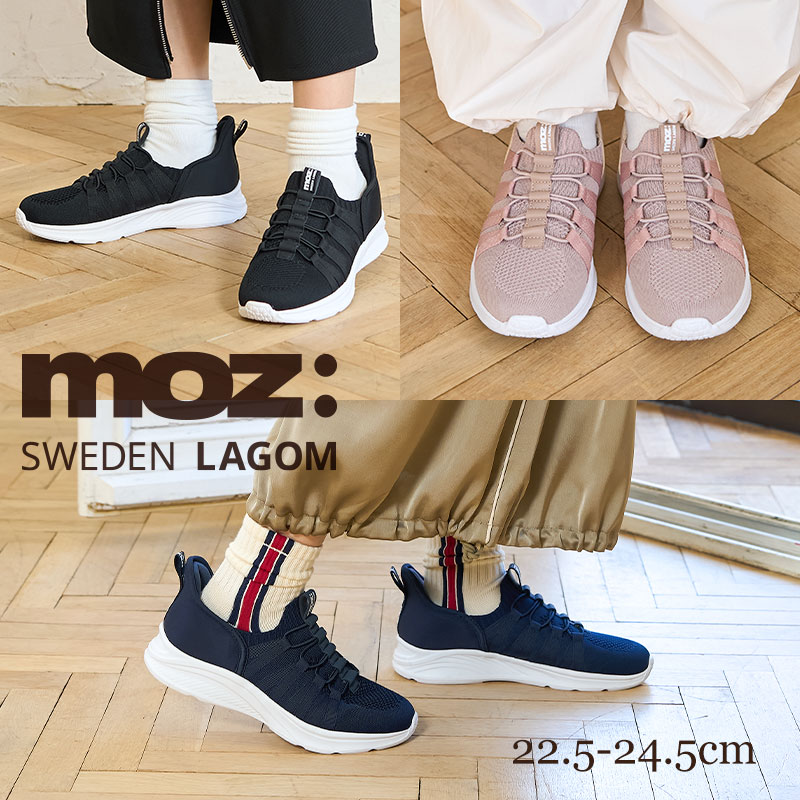 【福袋対象】モズ ローゴン スリッポン スニーカー レディース 軽量 履きやすい ハンズフリー ニット メッシュ 歩きやすい MOZ LAGOM 靴 シューズ スリッポン 北欧 スウェーデン カジュアル ブランド 軽い ピンクベージュ ネイビー ブラック 黒