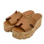 美品 HERMES エルメス エズ30 コルク プラットフォーム サンダル 35 22.5cm程度 ブラウン レディース 古着 中古