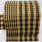 美品 名古屋帯 逸品 松葉仕立て 八寸名古屋帯 芭蕉布 夏帯 やまと 格子 黄土色 芭蕉 中古