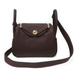 (未使用 展示品)HERMES エルメス リンディ ミニ 20 ショルダーバッグ 斜め掛け ヴォースイフト エベンヌ ダークブラウン ゴールド金具 レザー K刻印