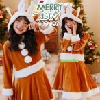サンタ コスチューム キッズ 女の子 トナカイ 着ぐるみ なりきり サンタコス 衣装 クリスマス 服 コスプレ 仮装 変装 長袖 ワンピース フード付き カチューシャ