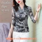 シアー トップス レディース きれいめ 柄 長袖 シャツ カットソー シースルー 大きいサイズ インナー メッシュ 透け感 Vネック カシュクール 肌見せ 切替え ラメ 装飾 オフィス 普段使い 秋冬 セクシー エレガント ヒョウ 茶色 緑