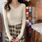 ニットセーター レディース Vネック 秋服 カシュクール シルキータッチニット 長袖 薄手 プルオーバー トップス カットソー 無地
