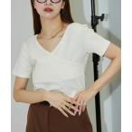 tシャツ Vネック カシュクール風 半袖 タック カットソー レディース