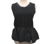 ミュウミュウ miumiu ブラウス カットソー キャミソール ノースリーブ フリル 絹 シルク100% XS 黒 ブラック MJT458 レディース