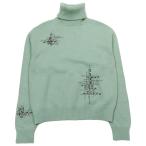 【ポイント2倍】【中古】未使用 23AW HERMES エルメス カシミヤ タートルネック セーター ニット 長袖 ラムレザー 編み込み ステッチ カットソー M グリーン メンズ Luxs ブランド古着のリュクス