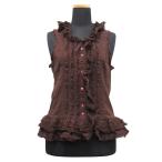 美品 PINK HOUSE ピンクハウス フリル ノースリーブ カットソー シャツ ブラウス 茶 ブラウン レディース 古着 中古