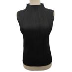 プリーツプリーズ PLEATS PLEASE 美品 BASICS プリーツカットソー ノースリーブ モックネック 3 L 黒 ブラック PP05JK102 レディース