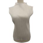 プリーツプリーズ PLEATS PLEASE 美品 NEW COLORFUL BASICS 4 プリーツカットソー ノースリーブ モックネック 3 L ベージュ PP05JK402