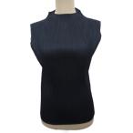プリーツプリーズ PLEATS PLEASE 美品 NEW COLORFUL BASICS 4 プリーツカットソー ノースリーブ モックネック 3 L 紺 ネイビー