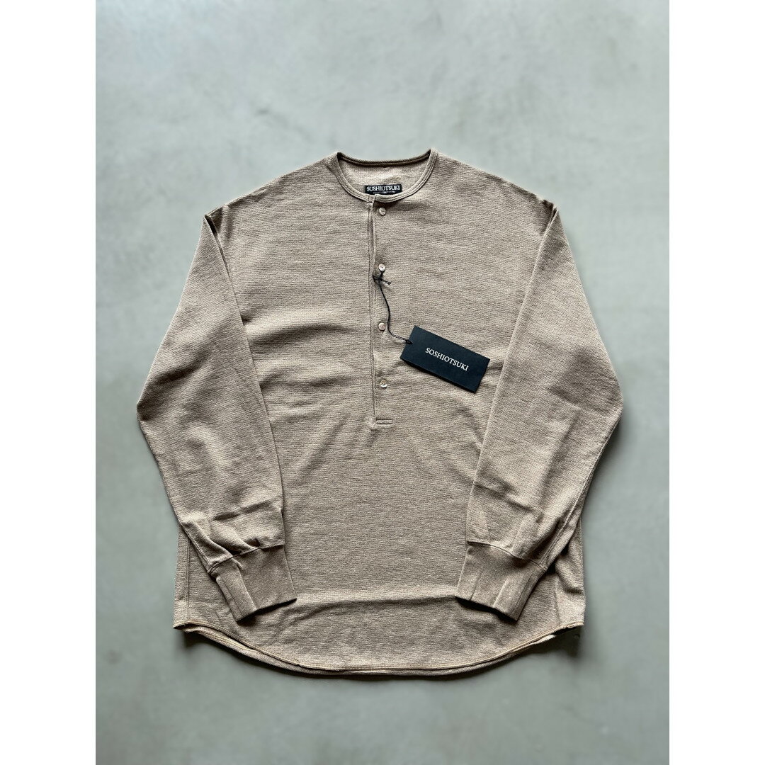 \全品5%OFFクーポン!5と0のつく日はP13倍※エントリー必須/ SOSHIOTSUKI | ソウシオオツキ DRAPED PLACKET THERMAL TEE BROWN (S26SS22CS) 26SS 26春夏 トップス ロングスリーブ ヘンリーネック ドレープ サーマル