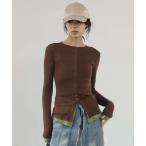 tシャツ 長袖配色レイヤードヘンリーネックリブトップス/ロンT レディース