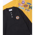 tシャツ 76Lubricants/ナナロクルブリカンツ オーバーサイズ ワッペン刺繍 ヘンリーネック ロンT 長袖Tシャツ メンズ レディース