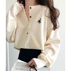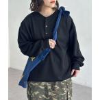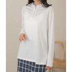 tシャツ リブワイドスリーブ ヘンリーネック長袖プルオーバー レディース