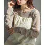 tシャツ レース フェイクレイヤード ヘンリーネック リブ トップス レディース