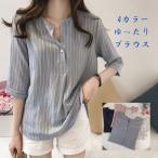 トップス 半袖 七分袖 カットソー ブラウス レディース ゆったり 無地 シャツ 体型カバー