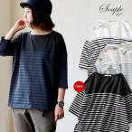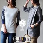 着痩せ カットソー パネルボーダー ボートネック ワイド 七分袖 7分袖 レディース プルオーバー 重ね着 コットン 二の腕 カバー (メール便50) Souple スプル