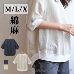 七分袖カットソー レディース 麻 ゆったり Tシャツ 7分袖 Tシャツ レディース トップス コットンリネン 7分 半端丈 綿麻 プルオーバー カットソー レディース