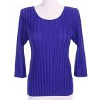 プリーツプリーズ イッセイミヤケ Tシャツ カットソー 長袖 七分袖 ボートネック ドルマンスリーブ 3 L 青 PP71-JK752