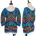 【中古】 ジーンズポールゴルチエJean's Paul GAULTIER グラフィックプリント七分袖パワーネットカットソー 茶マルチM【レディース】