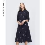 カットソーワンピース コットン ひざ丈 ラウンドネック 七分袖 フレンチスリーブ 花柄 レトロ Aライン フレア おしゃれ 大人可愛い 清楚 きれいめ 春 夏