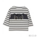 エルメス HERMES カットソー 七分袖 ボーダー コットン ライトグレー ダークグレー レディース 中古