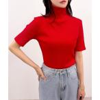 tシャツ 「甘さはいらない。ラインで魅せる」テレコタートルネック5分袖T レディース