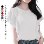 シフォン チュニック フリル袖 シフォン 半袖 春 クルーネック フリル袖カットソー 無地レース シャツ Uネック レディース シンプル 夏 結婚式